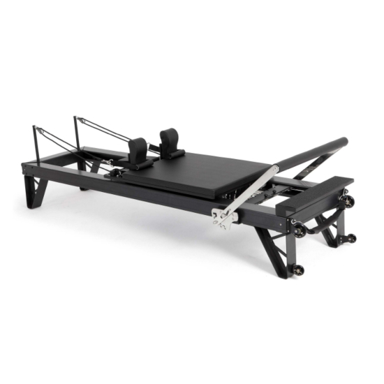Den innovative bar med quick-release funktion gør det let at skifte mellem seks positioner, og både bar og platform er udstyret med skridsikker polstring for maksimal stabilitet. Reformeren leveres med et komplet sæt af fjedre i forskellige modstandsniveauer, justerbar springbar med fire positioner, justerbart hovedstøtte, aftagelige og polstrede skulderstøtter samt et praktisk system til justering af reb.