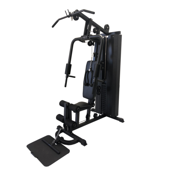 TITAN LIFE Home Gym ll er en multimaskine, hvor du kan træne alle kroppens muskelgrupper derhjemme. Maskinen er funktionel og giver en alsidig træning, hvor der kan fokuseres på specifikke muskelgrupper, uanset om det er overkrop, ben eller arme. Den er udstyret med kædetræk flere steder, hvor du kan bruge det håndtag du ønsker. Der er et 75 kg. vægtmagasin, hvor hver vægtplade måler 38 x 18 x 4 cm. og vejer 5 kg. pr. plade.