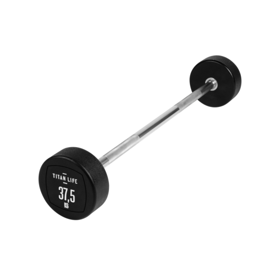 TITAN LIFE PRO Barbell 37,5 kg er en vægtstang med fast vægt, som både kan bruges til at træne biceps og triceps. Vægtenheden er svejset fast til vægtstangen og beklædt med polyurethan. Den er egnet til træningscenteret, foreningsfitness mm. Fordelen med en vægtstang med fast vægt er, at der ikke skal bruges tid på udskiftning af vægtskiver, samt at vægtstørrelser har et spring på 5 kg. fra 10 – 45 kg.