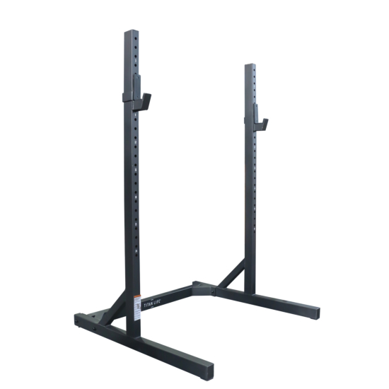 TITAN LIFE PRO Squat Stand er perfekt til dig, der ønsker et stærkt og stabilt squat stativ i høj kvalitet og med lang holdbarhed. Squat Stativet kan justeres i højden, og kan bruges til både squats, dead-lifts, millitary press, bench press og mange andre øvelser. Det stærke stål stativ gør det muligt for dig at træne intenst med en vægtkapacitet på omkring 200 kg. Samtidig er den egnet til at stå i dit eget fitnessrum derhjemme.